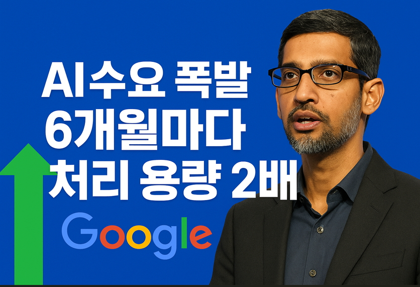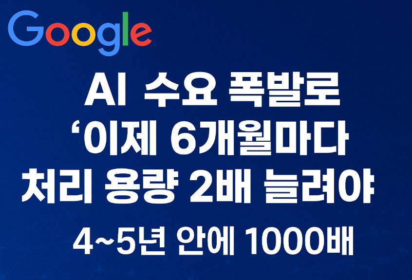 구글은 내부 전체 회의에서 **“앞으로 6개월마다 AI 처리 용량을 두 배로 늘려야 한다”**는 초강도 메시지를 발표했습니다.