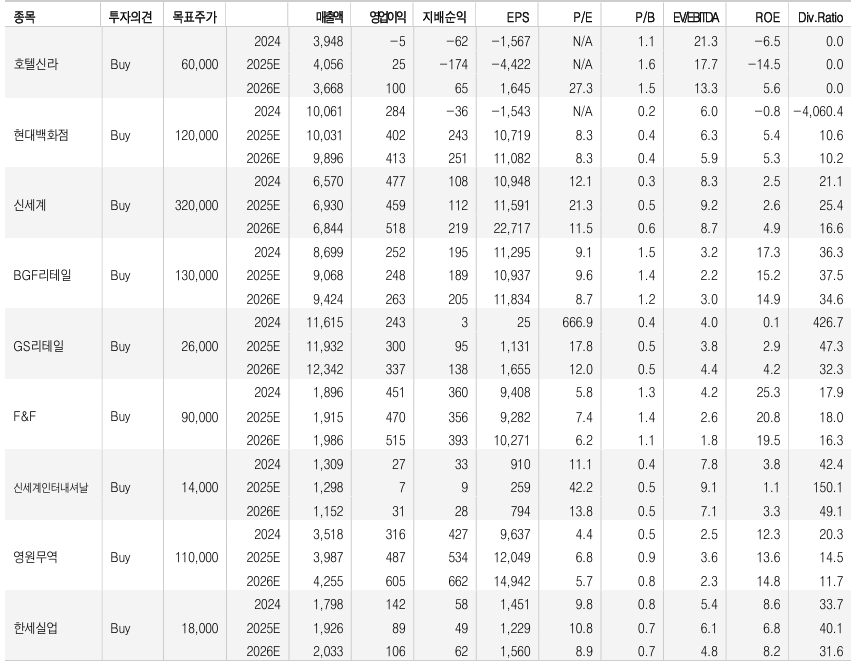 호텔신라·현대백화점·신세계·BGF리테일·GS리테일·F&F 실적 분석